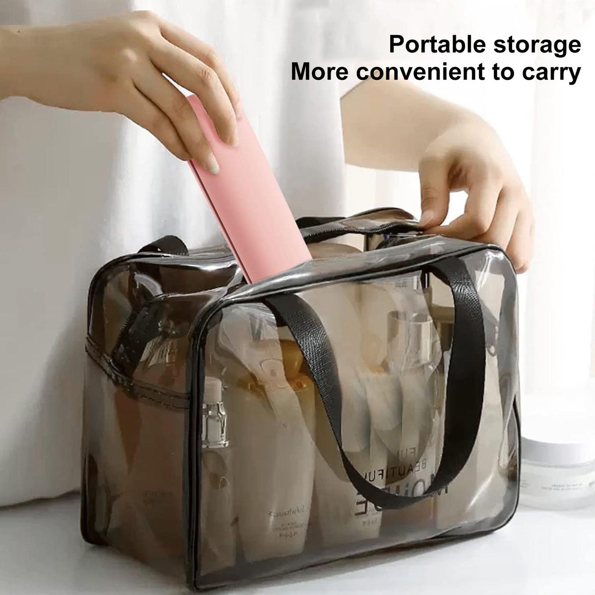 With its large capacity design, this versatile storage bag can accommodate various cosmetics such as nail oil, lipstick, eye shadow, makeup powder, and nail beauty tools. it's perfect for organizing not only your bathroom but also your living room, kitchen, bedroom, entryway, closet, outdoor pool area, and any other space that requires organization.