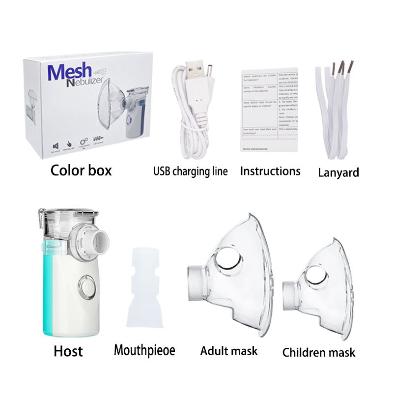 1 x Mesh Nebulizer 1 x Adult Mask 1 x Child mask1 x Mouthpipe1 x Package box1 x English Manual