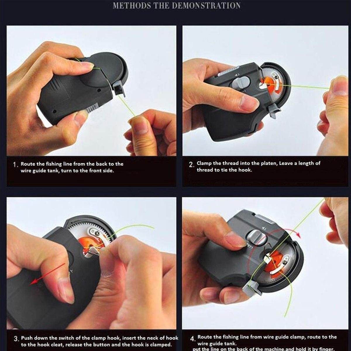 Portable Metal ABS Automatic Electric Hook Tier Machine For hooks & Line Product Description: HUMAN BODY ENGINEERING DESIGN: This design meets the characteristics of our hand grip, improved the practicality and safety, making it convenient and comfortable to use. 30 Seconds tied a hook, no longer ask for help, no longer hurt your hand, no longer time-consuming. SPECIFICATION: Material: ABS, stainless steel, the motor. ABS engineering material is very durable, do not easy to . Partial parts are made of stainless steel, anti rust. Size: approx 9CMX7CMX1.5CM. Fit Model: SUITABLE HOOK SIZE: (EU Size) Iseama:12-4/0 Chinu:10-1 Soda:16-4 Carp:8-3/0 Yamame:10-3 Suitable Line Size:#1-6 Diameter: Around 0.16mm-0.4mm Package included: 1x Machine with Blister packaging 1 x Anti-dust bag Run by 2 x AAA batteries(not included) Note: 1.Therealcoloroftheitemmaybeslightlydifferentfromthepicturesshownonwebsite
