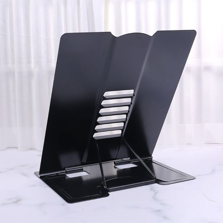 Portable Metal Adjustable Reading Book Holder Support iPad Document Book Shelf Bookstand, Size:Large(Black)