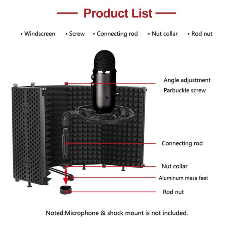 Portable Microphone Isolation Shield Adjustable Angle Foldable Cover Wind Screen M17F