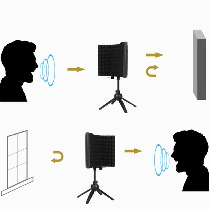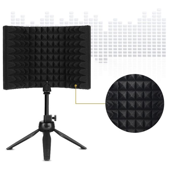 Welcome to my store, we have many kinds of price products, we launch new products every day, please follow my store and pay more attention, for more products, Please click on the seller information to enter our store to buy, we hope give you a pleasant shopping experience. Thank you and have a nice day!Description:ABS Plastic Shell - The overall shell of microphone isolation shieldis made of plastic, which is solid and durable, not easy to leave fingerprints.Multilayer Noise Reduction - Multilayer structure forms a system to absorb noise and reduce noise from back side and the surrounding.High density triangle shaped sponge can effectively capture and absorb main sound source and also avoid voice reflection.Foldable and Portable - 3 noise reduction planes combine with numerous heat dissipation holes strongly reduce noise and heat from recording equipments.High Density EVA Sponge - The inside of the microphone cover is made of absorbent EVA sponge material, which maintains the clarity of the human voice and the instrument during recording, eliminating the interference of the audio waves and the external environment.Professional Isolation Shield for Recording - You can record in a professional radio studio, personal studio which creates a better environment for recording.Specification:Material: EVA Foam and PlasticTripod stand:adjust range 15-23cmSize Chart:19x22cm/7.48x8.66inch