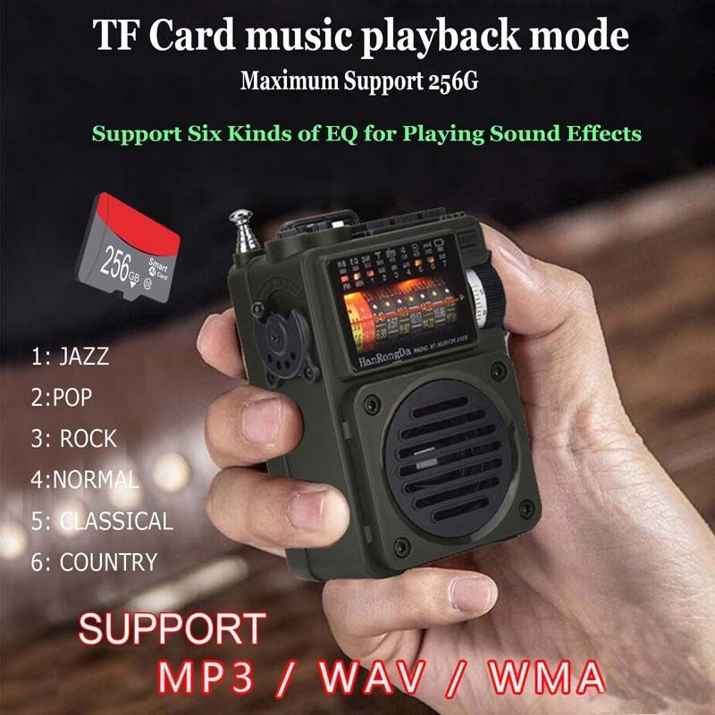 Features: 1. This product uses software programming to achieve full-band radio reception of FM, medium wave, short wave, WB (weather band in North American countries), with strong receiving sensitivity. 2. This product uses high-tech audio technology, can be connected to Bluetooth wirele music transmiion and playback, and can support up to 256G TF card music format playback. 3. In the radio mode, this product supports pulley switch tuning, preing the on to automatically search and store the station, and preing the on to get the station, giving users a brand-new experience. 4. The tuning key of this product adopts coded pulley tuning, 0-9 level selection. 5. This product uses BL5C 1000MAH lithium battery, which has a long battery life. The battery is detachable to extend the service life of the product. 6. This product is in Bluetooth, TF card music playback mode, and supports six types of audio EQ settings: 1: Normal (NORMAL), 2: Pop music (POP), 3: Rock music (ROCK), 4: Jazz music (JAZZ), 5: Claical music (CLASSIC), 6: Country (COUNTRY) 7. This product can set the shutdown (sleep) time, you can set 70-60-50-40-30-20-10 minutes of sleep. 8. This product is using medium wave receiver, the user can choose 9KHZ/10KHZ medium wave step value, there is no national boundary restriction. 9. In the radio mode, the product can be set to enable the backlight display, and the backlight can be turned off. 10. This product is in radio mode and can memorize 110 radio stations. (Frequency modulation/medium wave: each store 20 radio stations, short wave seven meter waves, each meter wave can store 10 each) Receiving Range MW:522-1620KHZ (Medium Wave Step Value 9KHZ) 520-1710KHZ(Medium Wave Step Value 10KHZ) FM: 87-108MHZ SW:5.70-17.90MHZ WB:162.400-162.550MHZ Receiving Sensitivity FM: ≤8dB MW: ≤86dB SW: ≤32dB Quiescent Current:≤60uA Maximum Current:≤650MA Speaker :Ф40mm/4Ω/3W Signal to Noise Ratio:FM: ≥40dB MW: ≥30dB SW: ≥40dB Radio Mode Storage Quantity:110 can be stored. (20 Frequency Modulations,20 Medium Waves ,70 Short Waves) Bluetooth Edition:VER 5.0 Bluetooth Receiving Distance:≤10 meters Minimum Operating Voltage:3.4V External Input Voltage Direct Current:DC.5v Lithium Battery :BL5C Lithium Battery:3.7v 1000mAh TF Card Playing Format :Support AV & WMA TF Card Maximum Supported Capacity:256G Channel Selection Mode: pulley switch station adjustment / full-automatic search and storage station Product Size:89.2X61X37.8MM Net Weight :100g Packing list: 1*Radio 1*Charging cable 1*yard (No retail package)