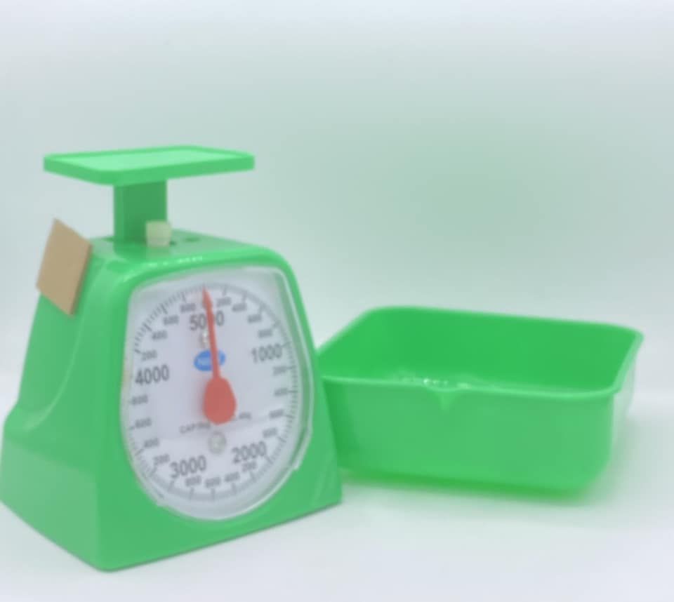 All Purpose & Accurate Kitchen Weighing Scale (1 Kilos Max Capacity, Graduation 5g)Ideal for weighing cooking and baking ingredients like powders, grains, meats, fruits, vegetables, liquids etc. Easy to Read Dial Display with Clearly Marked Measurements Large and Deep Weighing Tray: Square Deep Tray will prevent items from falling over to the sides No Electricity Needed Portable & Lightweight Kitchen Scale Easy to use and clean Made of very durable plastic