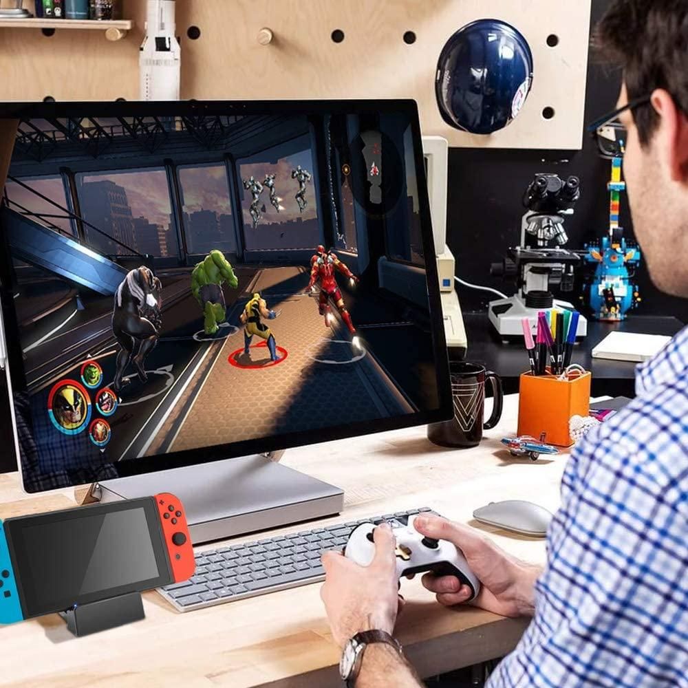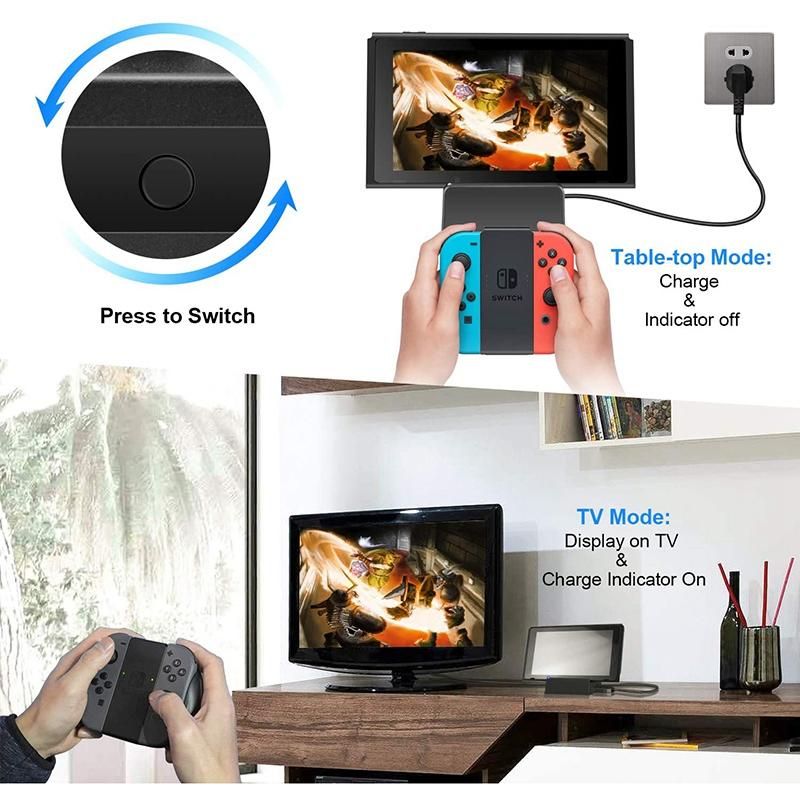 Portable Mini Switch TV Docking Station Charging StandONE-Press SWITCHING - One-Press display switching(Convert button on the back), freely switch between the host and the TV display interface.LIGHTWEIGHT & PORTABLE - This dock is much smaller, easy to carry around and it works as good as the standard dock for Switch. Its small size fits well in pocket,for Switch case and travel bag.