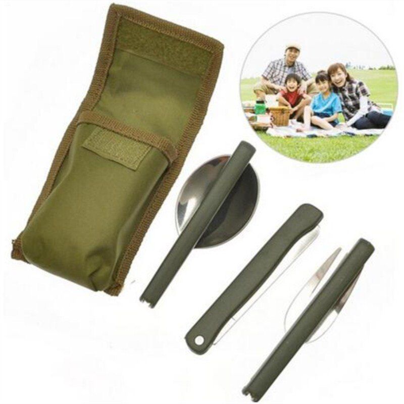 1X Portable Mini Tableware Set outdoor Tool Folding Cutlery Set with Spoon Fork Knives for Camping Picnic Stainless Steel Talheres