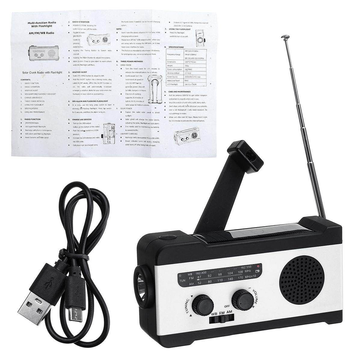 ---The handle of the solar crank radio can be rotated forwards and backwards, and the crank is continuously wound at a speed of 130-150 RMP / min to generate electricity. Solar energy is also a good way to charge, but it is mainly used to maintain the to extend its life. In an emergency, a dry is an alternate option. USB charging is the most practical and fastest way to up.
