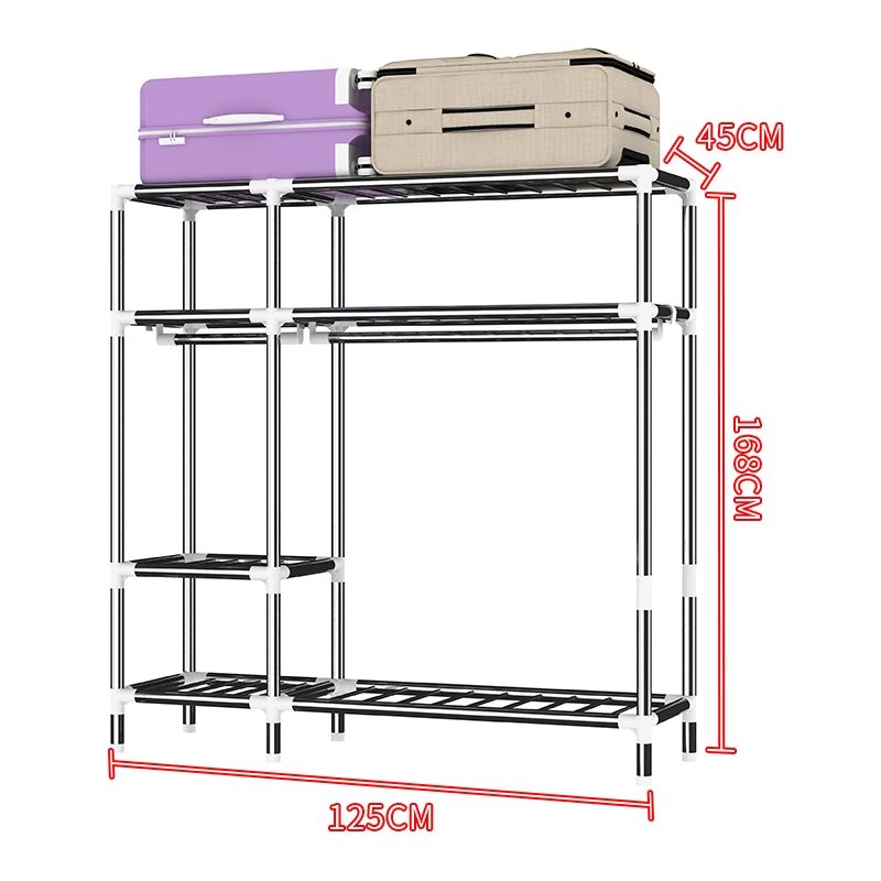 One exccelent solution for extra clothing storage around the house is to buy a portable wardrobe which can effectively store clothes anywhere you need it to. Because these freestanding portable closets are mobile they can easily be transported short distances with the use of a caster base. They can also be moved longer distances, downstairs, or on trips, moves, or vacations by folding down and or collapsing. Ideal for saving space within the bedroom, caravan, or wherever a quick clothing storage situation is required.Firm and durable steel piping frameLarge hanging spaceDurable Feva cover features dust and water resistance. Material Description25MM Plating steel tube.Steel pipe diameter.White rice reinforcement sleeveThickened Oxford clothCurtain and door curtain designTassel design. * Perfect for storing clothes, books, toys, shoes, absolutely anything. * Dust-proof, Waterproof, Mildew Proofing, Antibacterial * Free Combination, Easy To Assemble And Detach *Good size for different storage needs,with super bearing capacity. * Portable and movable