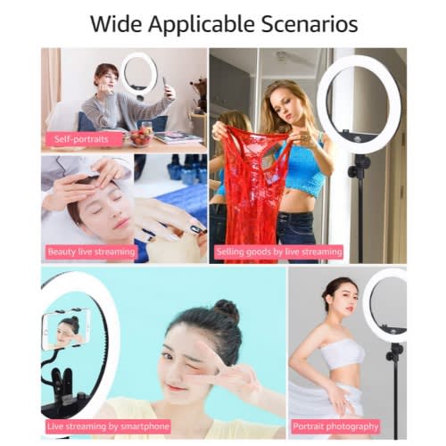 1. Adopts high quality LED beads, super bright, suitable for live broadcast, selfie, makeup, etc.2. Made of aluminum alloy, the shell has excellent heat dissipation performance, lightweight, durable and wear-resistant.3. Support warm white light, warm yellow light and white light adjustable, You can adjust as you want according to the scenes to get different shooting effects.4. Equipped with a mobile phone clip with a 360 & deg; adjustable metal tube, you can adjust it to get optimum angle.5. With an interface that diameter is 1.6cm at the bottom, which can mount onto tripod in same size.