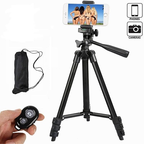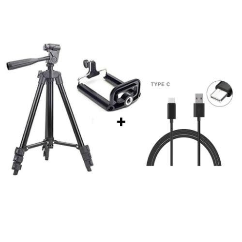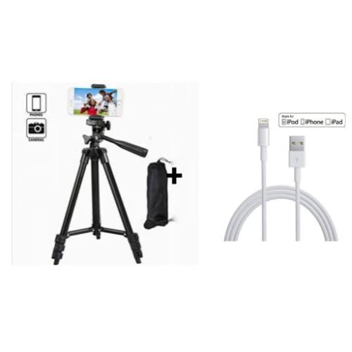 Tripod-3120 Portable Adjustable Aluminum Lightweight Camera Stand + iPhone Cable