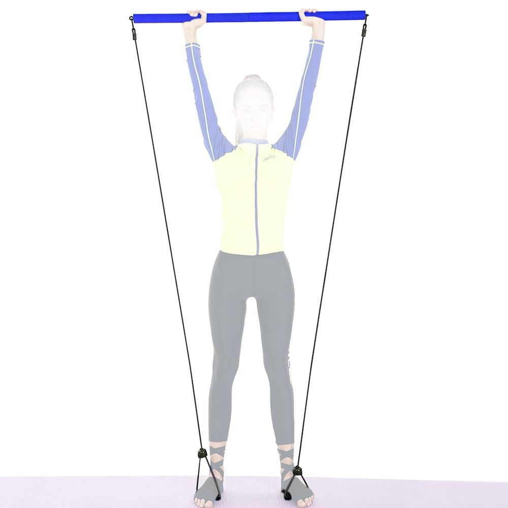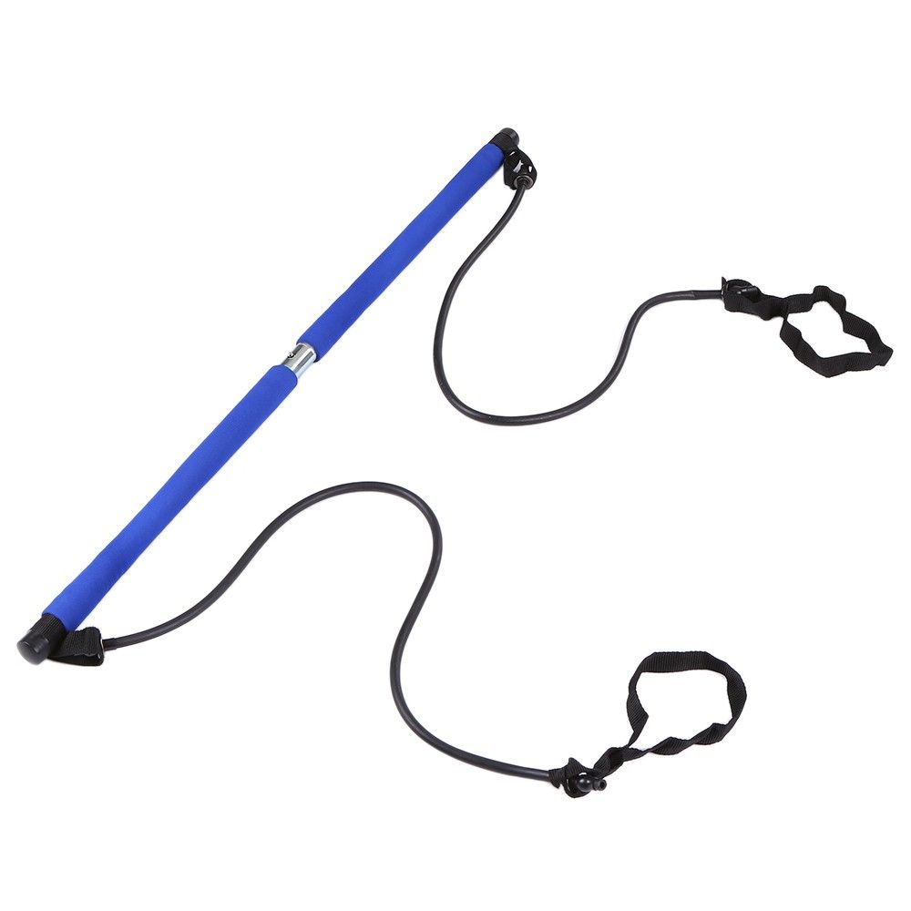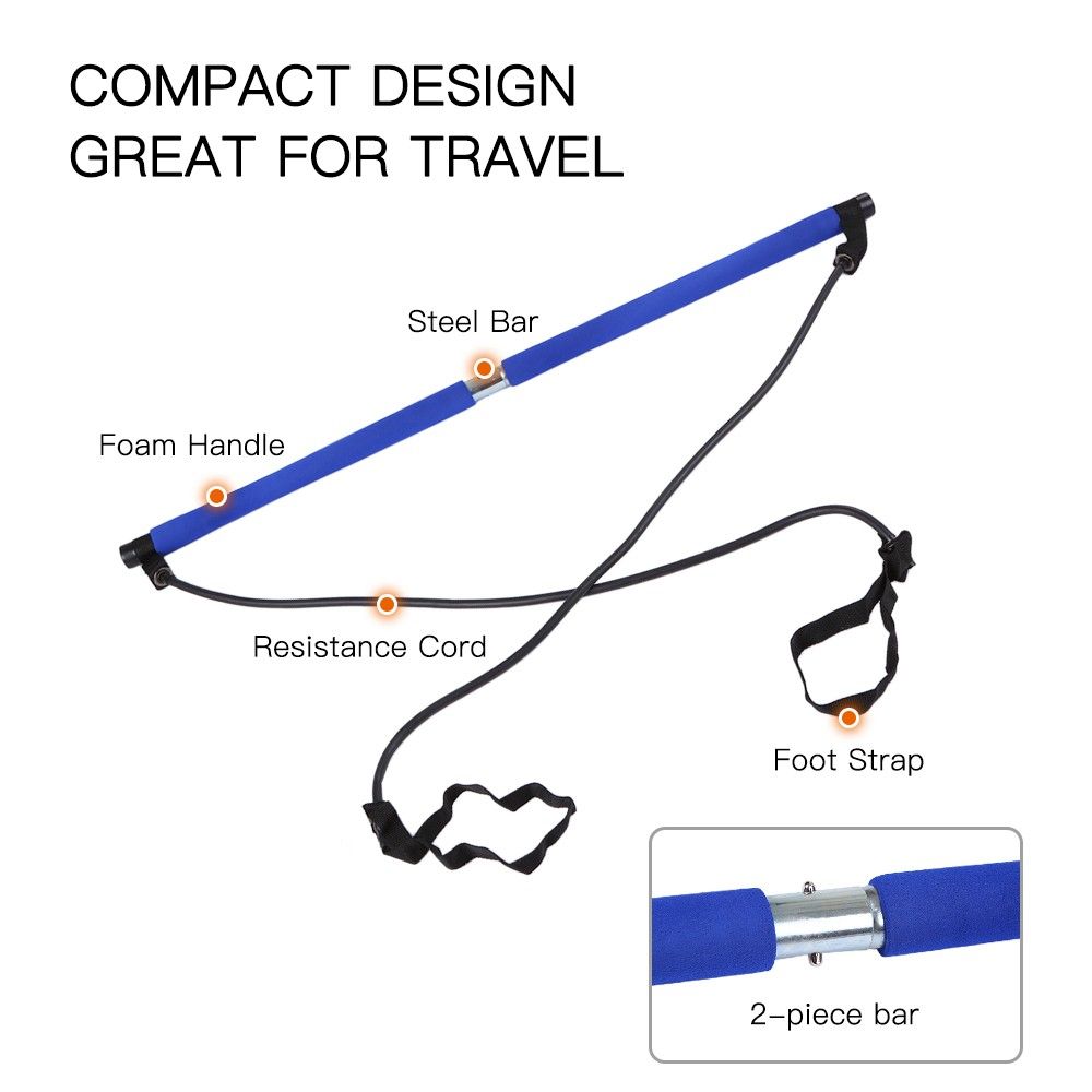 Pilates bar with resistance bands and nylon foot straps to help you develop a stronger core, tighter buns, leaner looking thighs.