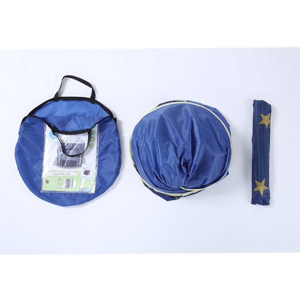 Adorable up playhouse space tent for kids to play fun, providing hours of happy hours for kids hiding in the tunnel tentPortable, foldable, lightweight and convenient to carry, can glow at nightMaterial: PolyesterSize: Approx 105 x 135cmColor: BlueThis play tent is great for anywhere such as home, beach, backyard, park, parties, camping, day care, etc