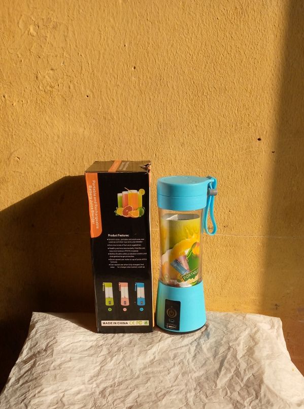 The portable juice blender bottle is lightweight and convenient to carry. Perfect for the office, gym, camping, or even traveling.Has powerful stainless steel blades in 3D and the blades can crush ice, nuts, fruits and vegetables Easy to use, dismantle and clean. Healthy and Eco-Friendly design. Using food grade material. Cap material: PP, Jar body material: PC, other material: ABS and silicon. Blending jar can be used as portable travel cup that fits most car drink holders. Great for making your own fruit juice, smoothies, baby food, shakes for your favor. USB powered supply