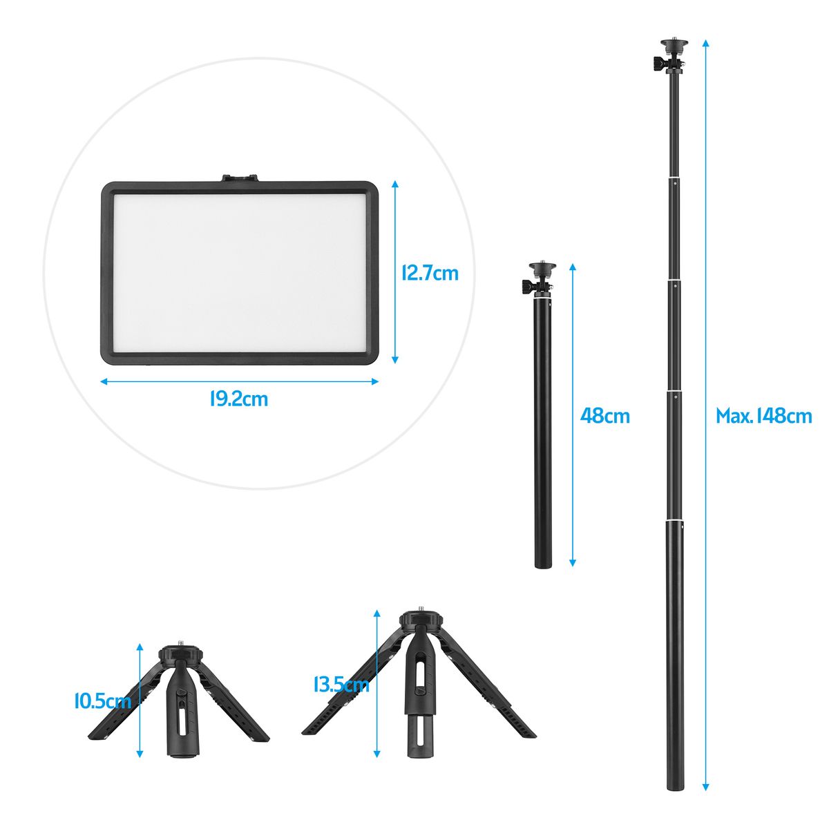 【Extendable and Detachable Tripod】Comes with a extendable tripod and max. usage height is up to 148cm/58in, which allows you to place the LED video light on desktop or floor stably; you can use the tripod as a selfie stick, or as a mini desktop tripod after detaching.