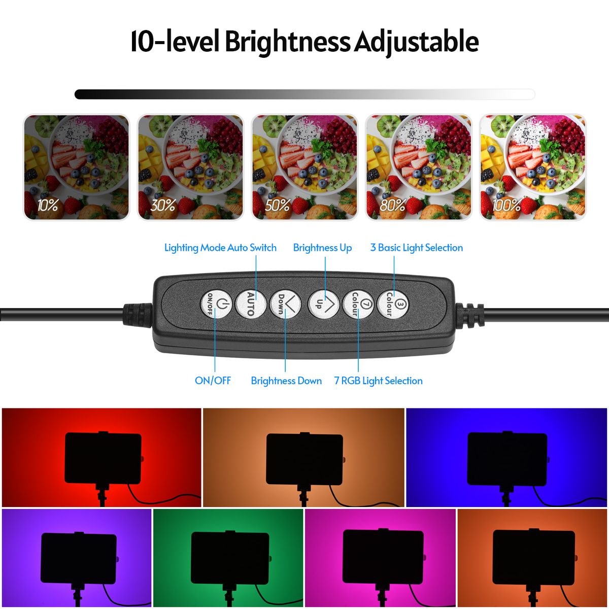 【RGB Colorful Lighting Mode】Using 35pcs RGB light beads to provide you with colorful lighting effects, you can select 7 color lights and various different change mode to create super cool photos and videos.