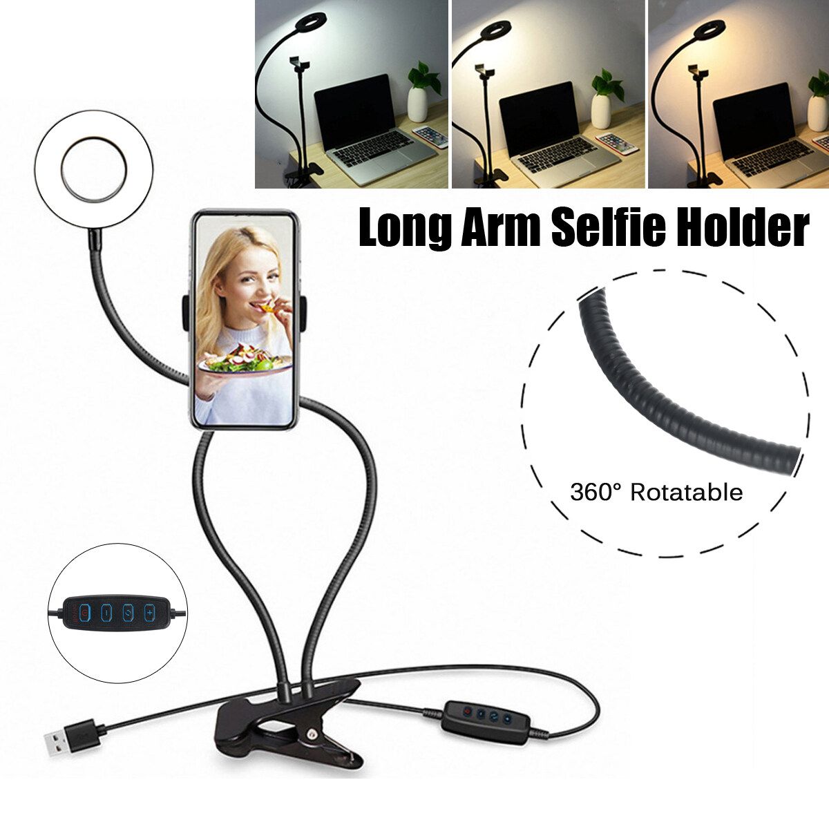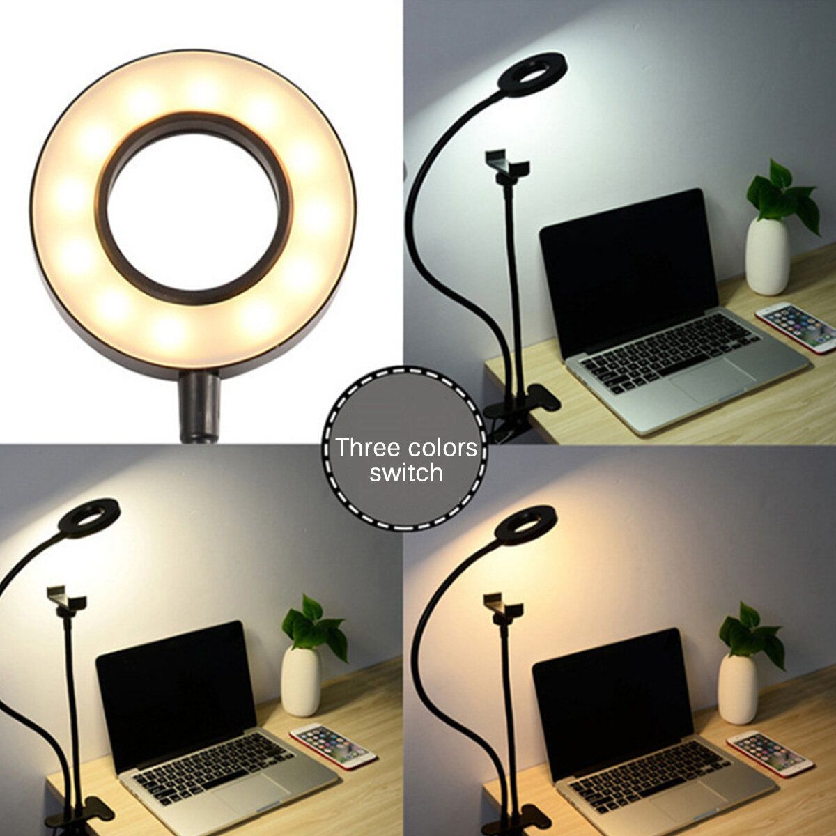 - This Clip can also work as Desk Lamp, Phone Holder or Selfie light.
