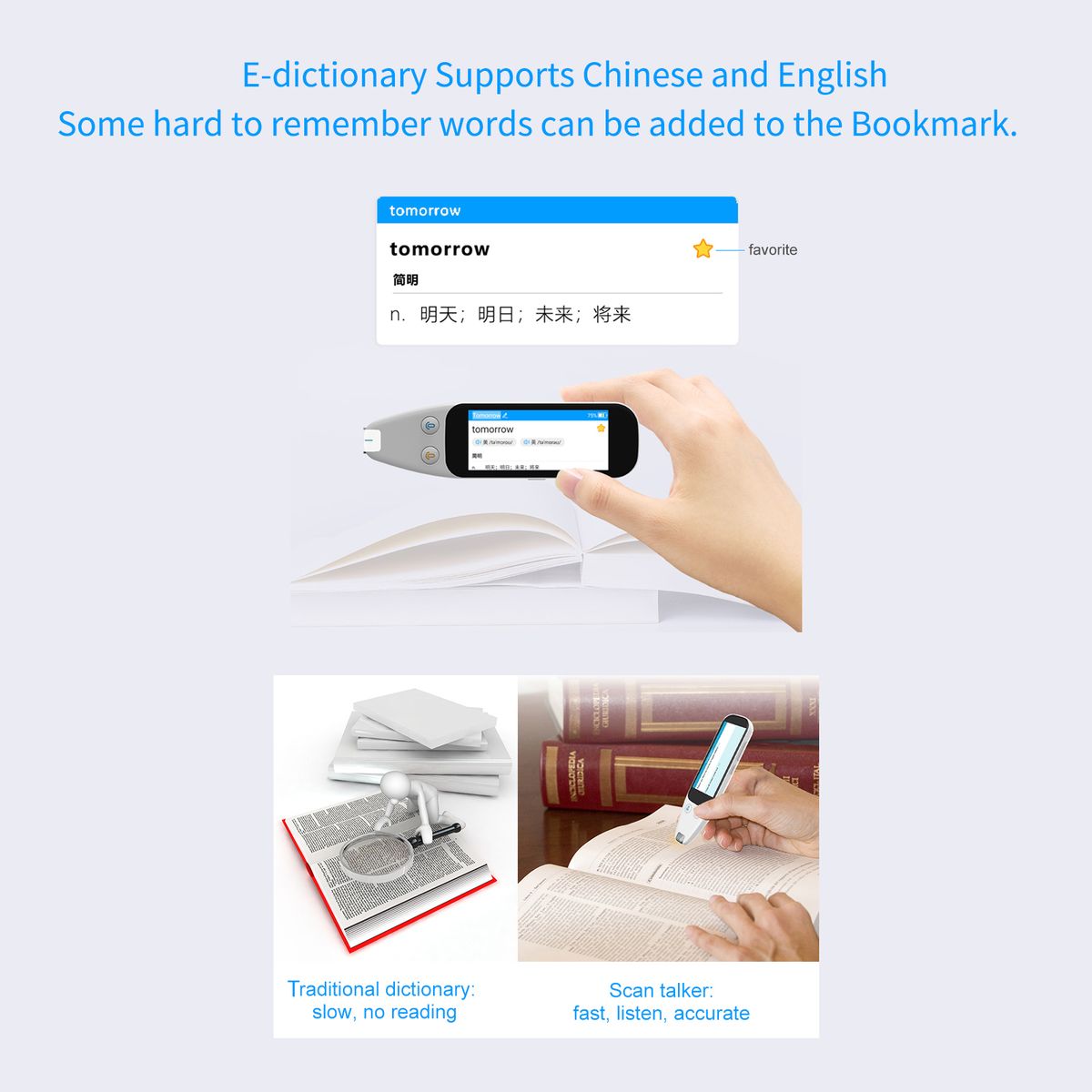 【Functions of Scantalker】: E-dictionary supports Chinese and English, some hard to remember words can be added to the Bookmark. Support 3 languages offline translation. Support text scanning and reading. Support English Study and Text Excerpt, you can copy text excerpt to the computer via USB cable. Support Intelligent Recording and MP3.