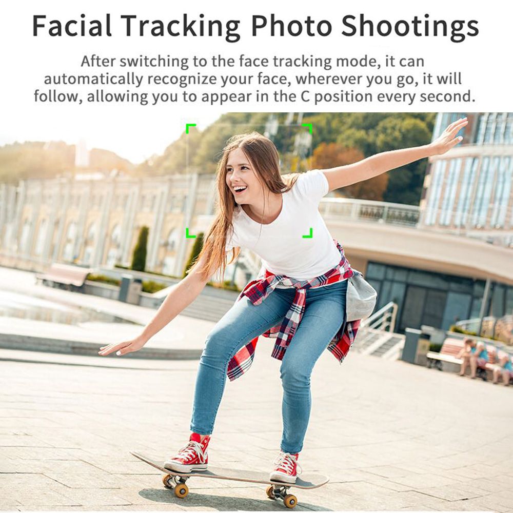Auto Tracking Selfie Stand - Face amp; Object tracking, real-time target locking, as long as select the target in the camera interface, the stand will follow the target to complete multiple scenes shooting.