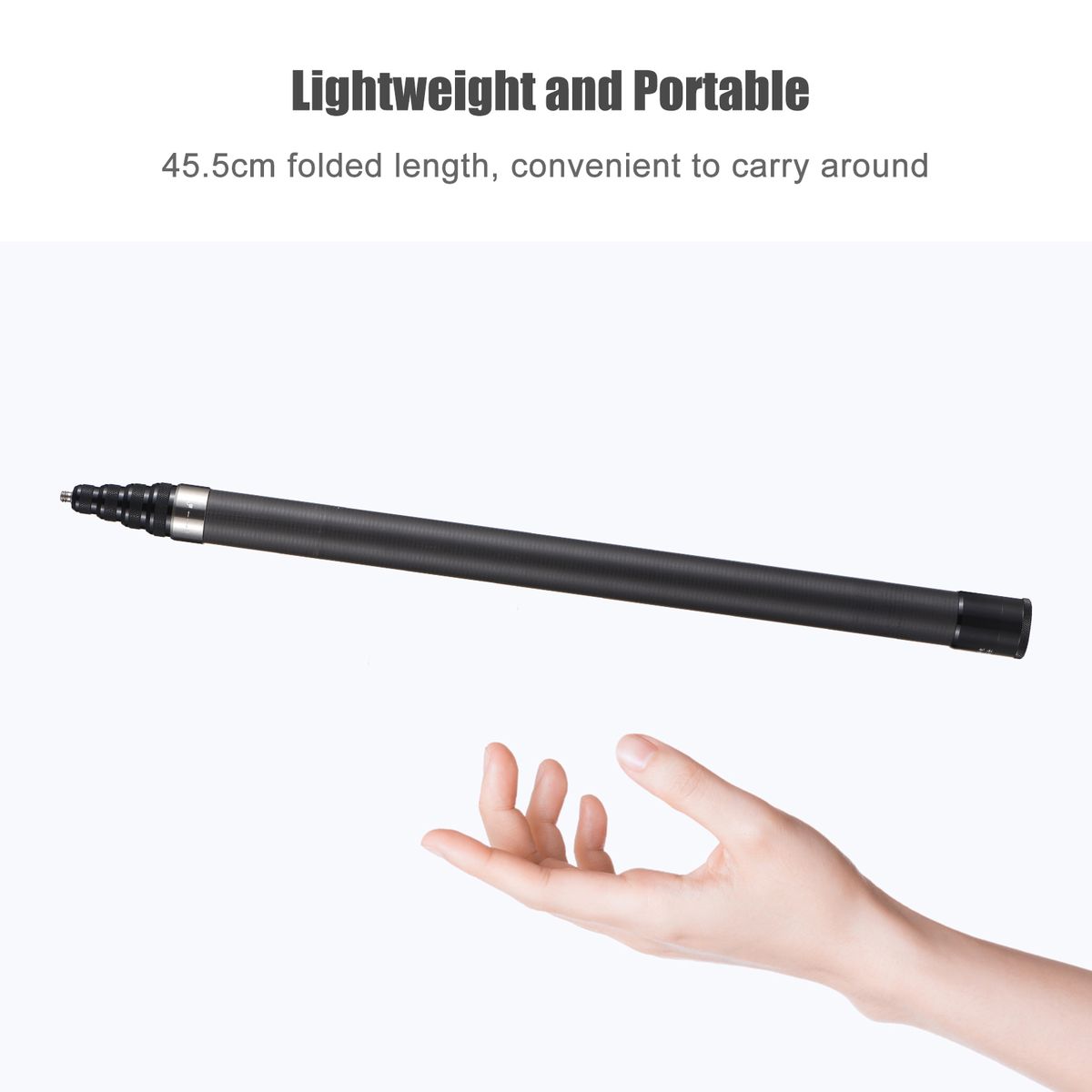【Carbon Fiber Selfie Stick】Made of carbon fiber material, with standard 1/4 inch screw mount, the selfie stick is compatible with Insta360 X3/ X2 and other action cameras.