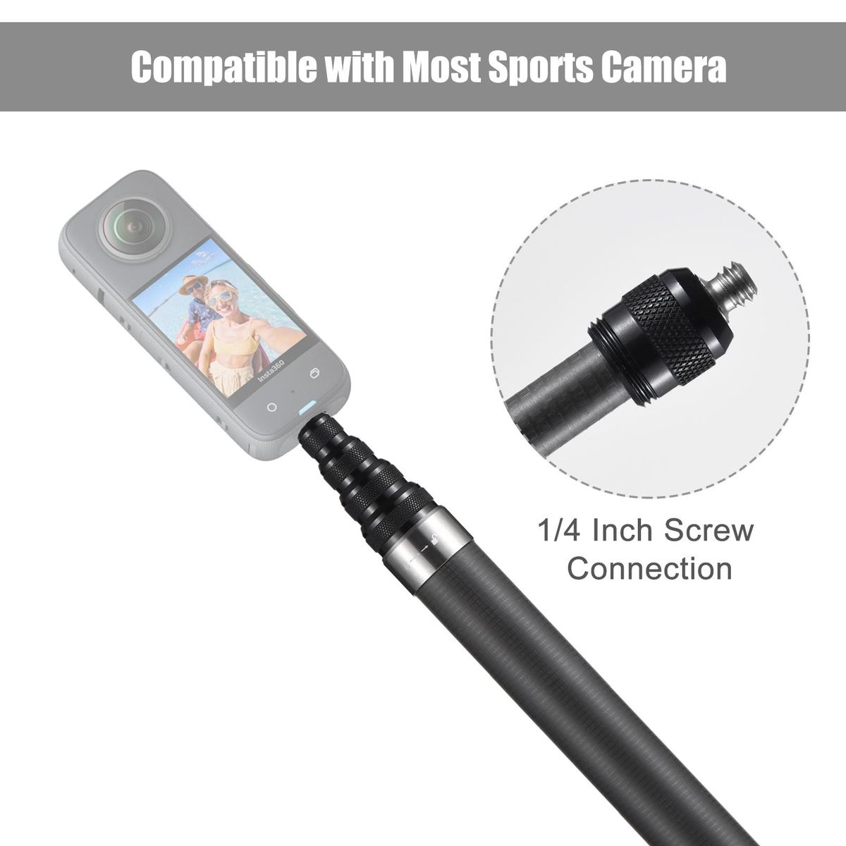 Buy Portable Selfie Stick Carbon Fiber Stand Camera Bracket 1/4 Inch Screw Mount 45.5cm-300cm/ 17.9in-118in Adjustable Length Compatible with Insta360 X2/ X3 in Nigeria