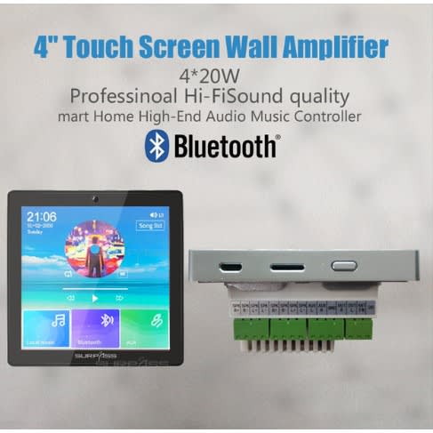 Hi-fi 4'' Bluetooth Wall Amplifier Touchscreen Mini Stereo Home Theater Sound System