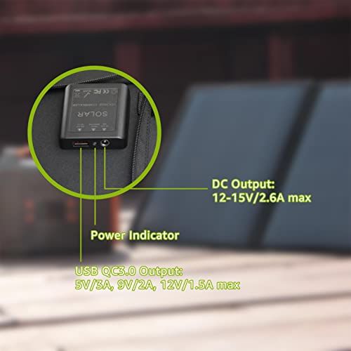 Details: Zerokor 40W Solar Panels with built-in Smart IC for USB Port The solar harger an automatially and quikly identify the urrent of your devies and speed up the harging proess. Speifiations: DC & USB Output Power: 40W(Max), Solar Cell Effiieny: % DC Output Voltage: 12V15V, DC Output Current: 2.6A(Max) USB QC3.0 Output: 5V/3A, 9V/2A, 12V/1.5A Folded Size: 13.6 x 9.8 x 2.4in, Unfolded Size:41.2x13.6x0.2in, Weight: 4.2lb/1.9kg Whats in the box 1* 40W Solar Panel; 1* 10-in-1 Connet Cable; 1* DC-to-DC Cable; 1*User Manual Tips for Use: The output power will be affeted by fators like weather onditions or the angle to the sun, please make sure that there is suffiient sunlight when you use the solar panel. Please hek whether the output voltage of the solar panel (15V) is in the range of the input voltage of your power station. Please do not press the solar panel with heavy objets, or it will damage the hip inside