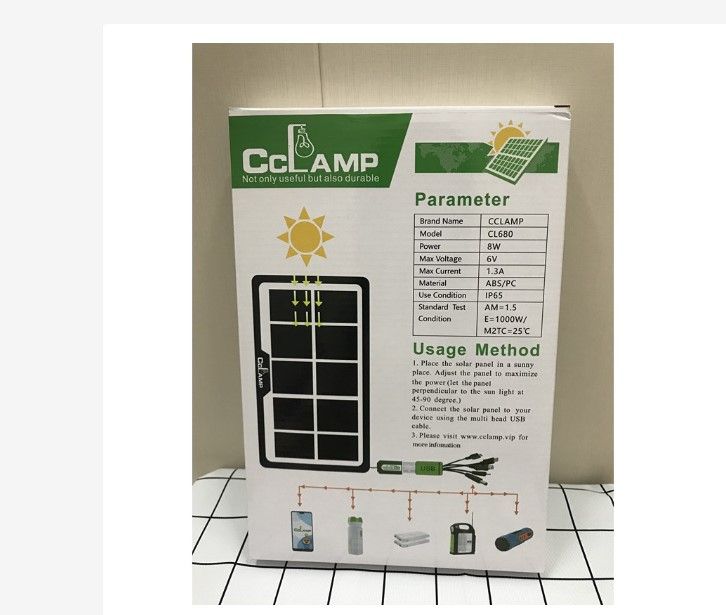 Solar portable monocrystalline panel CcLamp CL-680 charging from the sun Solar Panel 8W