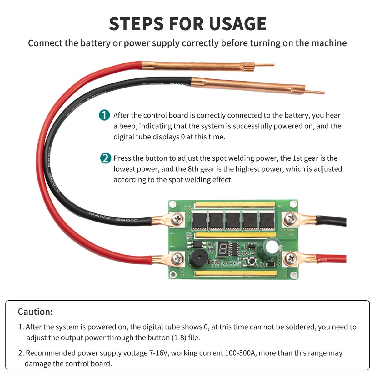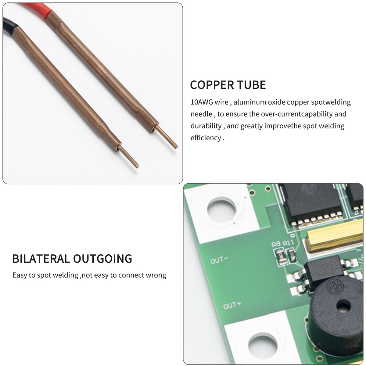 10AWG wire, alumina copper spots welding needle, to ensure high current passing capacity and durability.