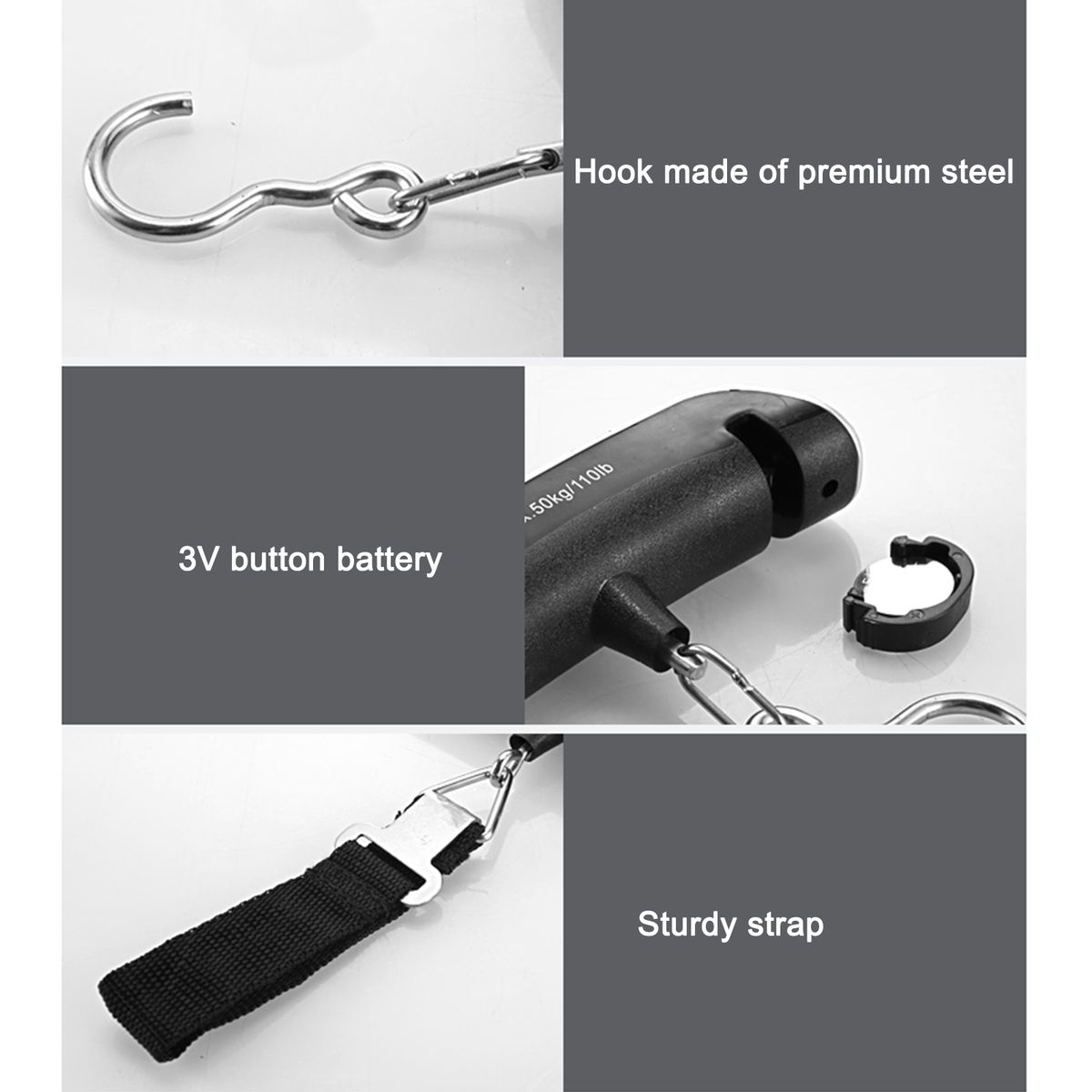 Never pay unexpected overweight luggage or postal fees again by using this hanging digital scale.