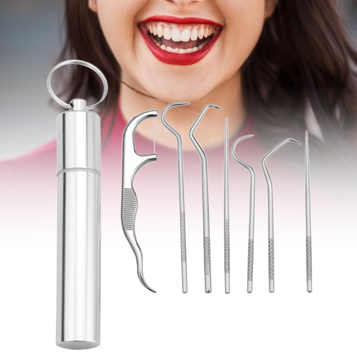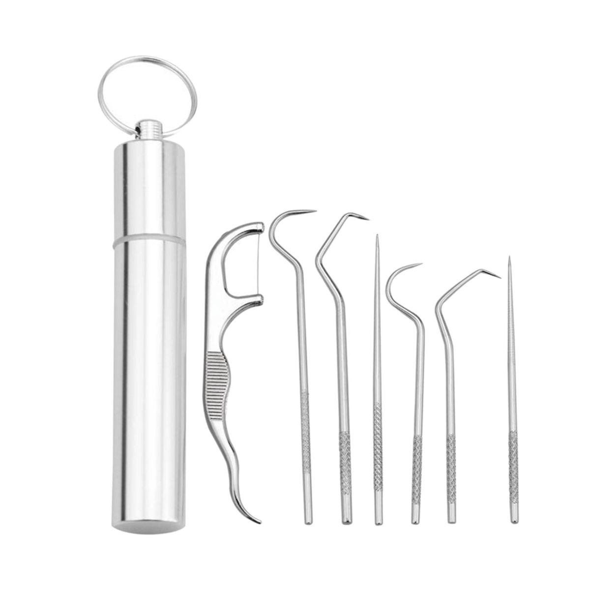 Toothpick Kit: 3pcs or 7Pcs toothpick kit for you to choose, each toothpick has different use, meet your different needs. Purpose: Quickly and effectively remove food residues and tartar, keep your teeth clean and healthy, suitable for daily use, backpacking, camping, hiking and traveling.Metal Toothpicks: Made of 304 food grade stainless steel, smooth and polished, not easy to rust, can be reused after cleaning, environmental than wooden ones.Anti-Slip: Each toothpick has a speacial pattern in the end of handle, so you can hold these mini toothpicks firmly. Portable: Comes with a toothpicks storage tube, pocket size, lightweight, easy to carry in key chains or bags, anti-lose.