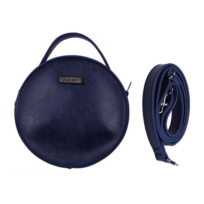 Portable Stylish Thumb Piano Soft Case Microfiber Leather Circle Shape Kalimba Storage Bag Multi-Functional Round Gig Bag with Adjustable Strap Blue