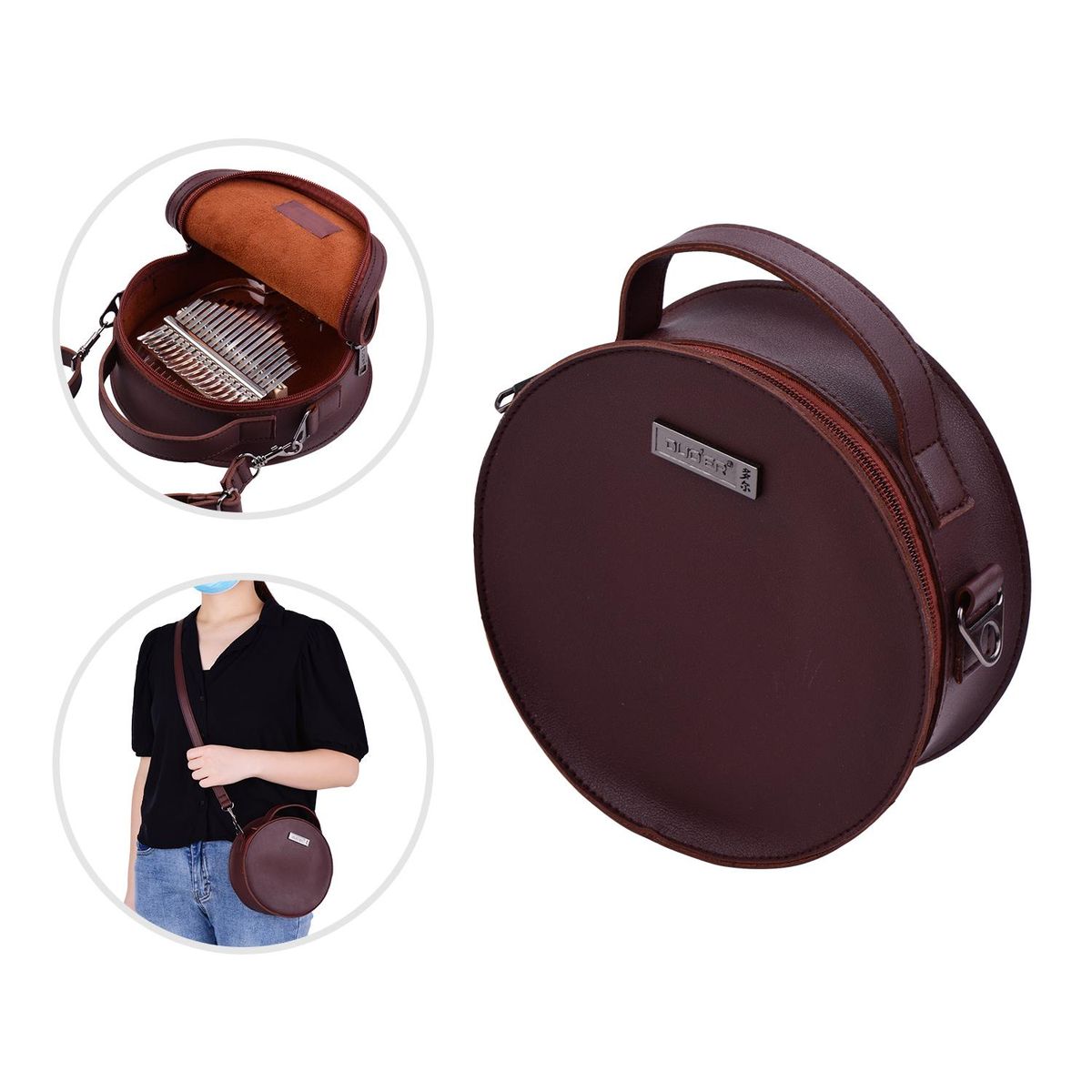 Buy Portable Stylish Thumb Piano Soft Case PU Leather Circle Shape Kalimba Storage Bag Multi-Functional Round Gig Bag with Adjustable Strap Dark Brown in Nigeria