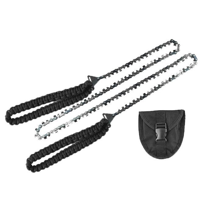 -Chain , also known as , is an important item in camping equipment. It is made of high-quality high-strength ferromanganese. It has the characteristics of sharp teeth and smoothness without hurting hands. chain with two wide nylon handle straps, -light, portable, flexible, and wear-resistant.