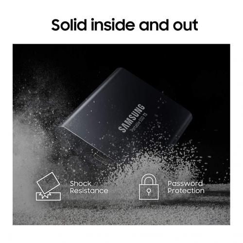 Do more. Worry less. The T5 has no moving parts and a sturdy metal body, so it can handle drops of up to 2 meters*. The optional password protection with AES 256-bit hardware encryption keeps your personal and private data more secure
