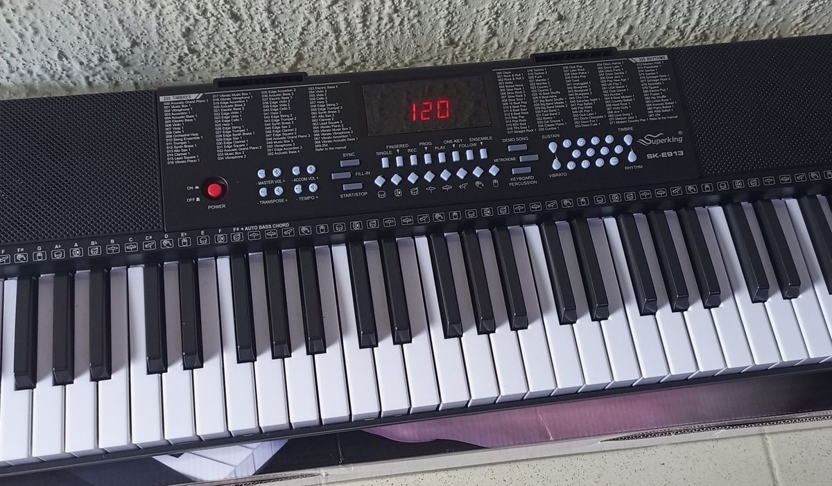 This is a 61 full size keys teaching piano keyboard for Learner's and beginners. This keyboard is equipped with 255 tones, 255 rhythms, 24 songs, 3 step Lesson, transpose functions, record and play back, sustain/ vibrato, metronome, mic jack, phone and output jack.