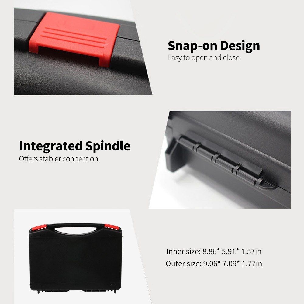 This Tool Box adopts snap-on design, easy to open and close. And with integrated spindle, it offers stabler connection. Besides, its handle conforms to ergonomics, comfortable to touch.