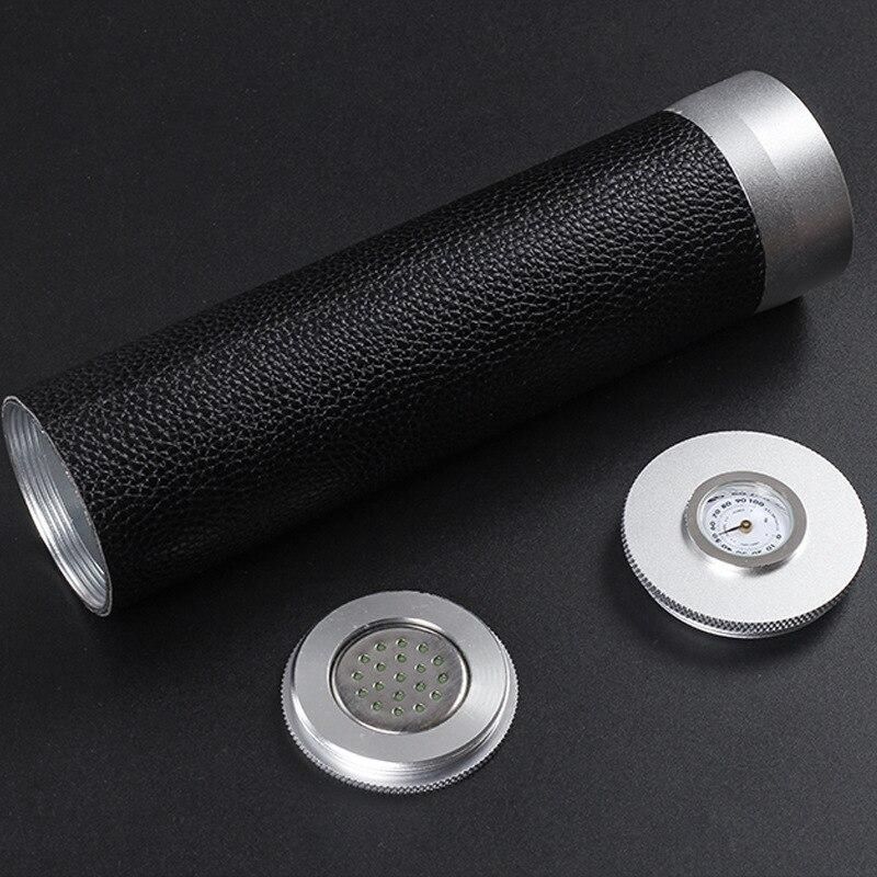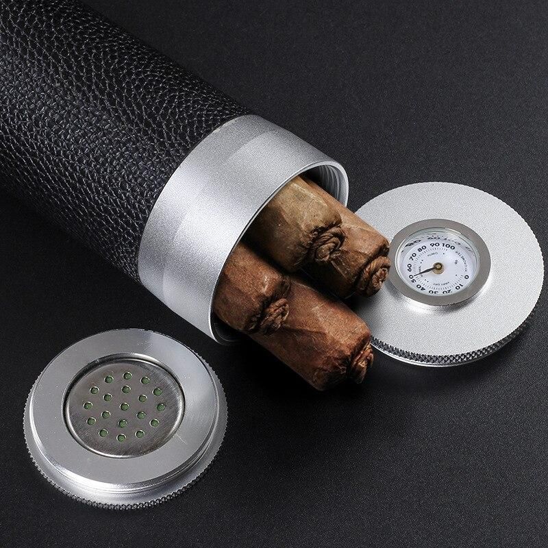 Portable Travel Cigar Case Leather Aluminium Alloy Lined Cigar Tube Mini Humidor With Humidifier Hygrometer Box Fit 4 Cigars-Cigar Accessories