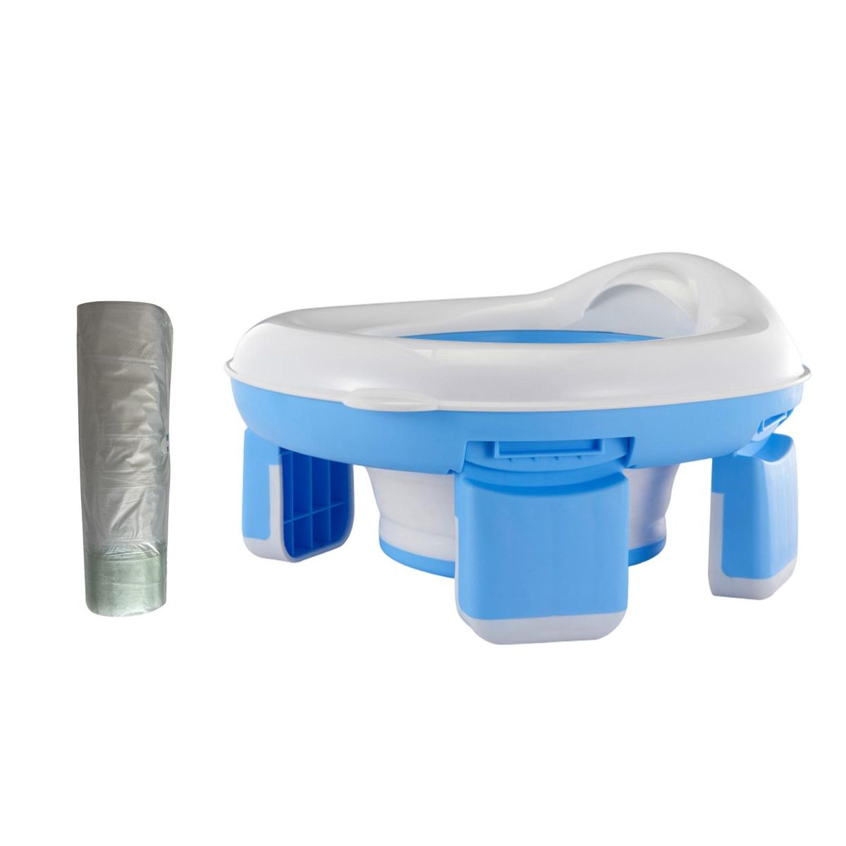 Lightweight and compact, My Travel Potty from Summer is the perfect on-the-go solution. This potty has two modes of use, so your toddler can go to the bathroom with confidence, anywhere! In standalone potty mode, the legs extend down in seconds and lock securely. Soft, flexible tabs hold disposable potty liners in place, making cleanup a breeze & ndash; just dispose of the bag and wipe the bowl clean. Extend the legs outward and this travel potty seat for toddlers fits on standard-size adult toilets as a potty ring, for use at home or in public restrooms. Integrated handles add stability when used as a potty ring. My Travel Potty includes a supply of 3 disposable liners. Each leak-proof disposable potty bag holds up to 150 ml of liquid. The potty comes with its own storage pouch so you can keep it in your car or diaper bag, or under the stroller. That way, it & rsquo;s always there when your little one suddenly needs it!