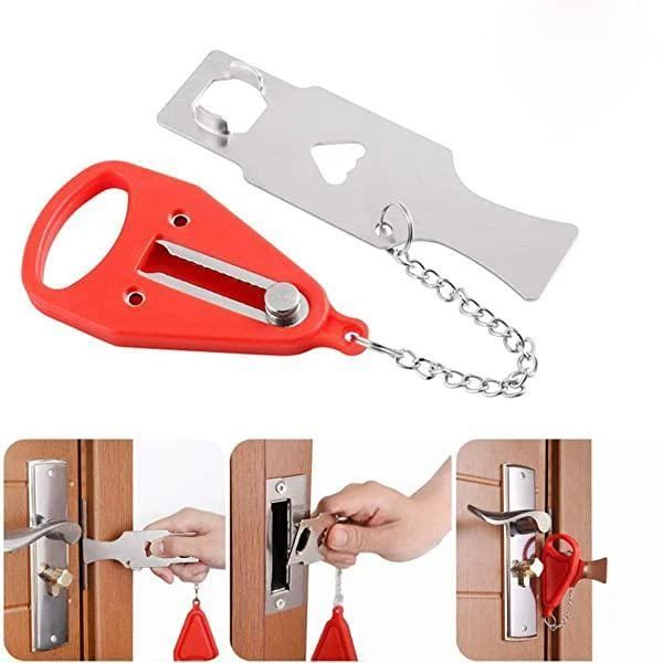 Portable Door Lock gives you additional ty, security, and privacy at home or away. Installs in seconds without any tools required. You can use it at home or on many other occasions, such as a hotel, school, rental and so on.