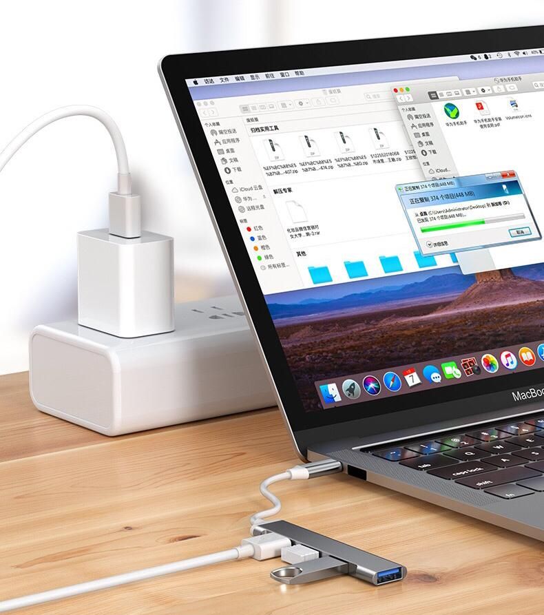The theoretical transmission rate of type3.0 interface up to 390MB/s, can shorten time of file transmitting.USB interface for mobile phone/tablet with MacBook and type-C interface, connect USB external devices such as U disk, mobile hard disk, game controller, radiator, printer, bank u shield, etc. , the mobile phone is connected to U disk, mouse and other settings at any time and place, so that the mobile phone can be changed into a computer Type-c multi-function extension in seconds, get rid of the trouble of the thin laptop interface single, connect more devices USB3.0 easily extend the settings, connect the mouse, hard disk and other USB settings, four simultaneous operation without pressure. 1GB movies in 3 seconds to experience high-speed transmission. Powerful inner core, each function can have an independent chip, smooth not Cottonwood. Three interfaces, to meetdifferent needs, optional.