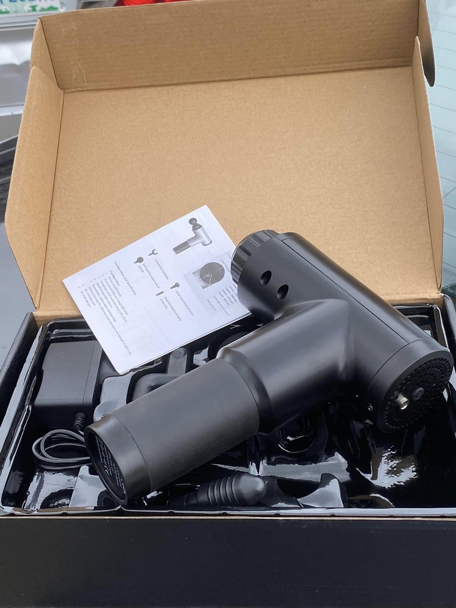 massager; Application: fitness and wellness massage; Display: is; Amplitude of oscillation: 12 mm / 0.47 inch; Speed: 1200-3300r / min; Battery: 24 V 2400 mAh; Work time: up to 6 hours; Charging time: 2 hours; Charging voltage: 220 V; Size: 24x24.5x51 cm; Options: muscle massager, replaceable nozzle 4pcs, charger, manual, box