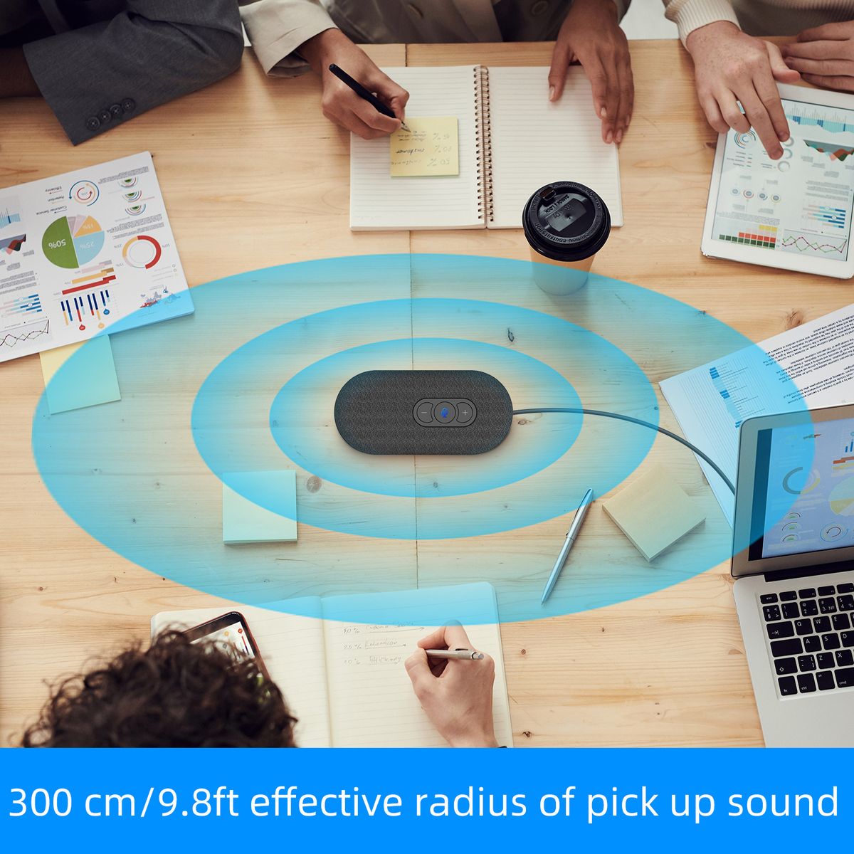 Features:k 360°omnidirectional audio pickup microphone guarantees everyone can be heard from any direction in the room. 9.8ft (300 cm) sound pick-up distance, intelligent DSP noise reduction enhancement processing, the audio effect is better, and the performance of human voice transmission is unparalleled.