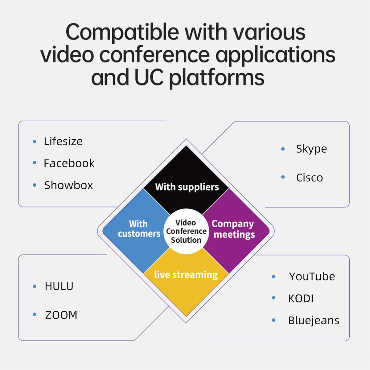 k 360°omnidirectional audio pickup microphone guarantees everyone can be heard from any direction in the room. 9.8ft (300 cm) sound pick-up distance, intelligent DSP noise reduction enhancement processing, the audio effect is better, and the performance of human voice transmission is unparalleled.
