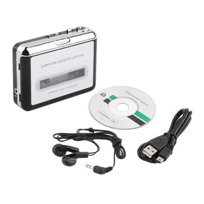 1x Cassette Tape Player1x USB cable1x headphone cable1x manual1x CD