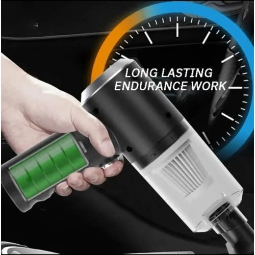 A rechargeable cordless vacuum cleaner with an LED light that helps you easily clean anywhere and any corner, vacuum absorbs hair on the sofa, food crumbs, keyboard space dust, cigarette ash, breadcrumbs on the desk, dust in the car, paper or pencil clippings, small debris in the bagThe latest generation of portable mini vacuum cleaner now offers a high capacity 2000mAh lithium-ion battery and a cleaning time of up to 20-25 minutes after fully charged.Handheld portable vacuum cleaner providing 4500pa suction, perfect for daily quick cleaning for home, office, pets, car, keyboard, makeup bag, a computer without bulky and tangled laces, helps you clean easilyLightweight car vacuum has 2 different nozzles for different cleaning purposes, thorough cleaning, no dead angle, delicate design that can reach every corner of your car.Powerful easy suction cyclone to remove dust from anywhere washable HEPA filter keeps Powerful suction increased dust cup capacity to meet the need for dirty deep cleaning needs of your kitchen bedroom bedroom