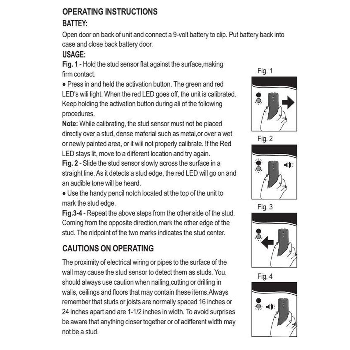Easy to use, when it detects the edges of the stud, the red LED will light up and make a sound. Use the handy pencil notch located at the upper of the unit to mark the stud edges.