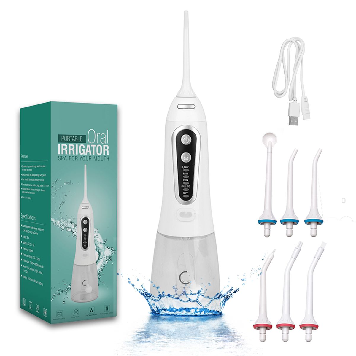 1 x Portable Oral Irrigator,6 x Nozzle ( of the sealing ring),1 x USB Cable,1 x User Manual (English)