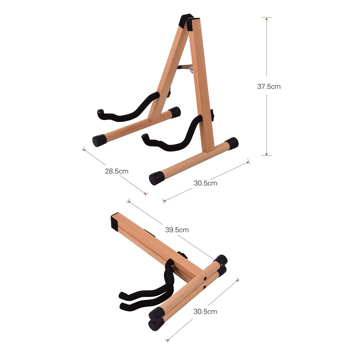 Compatible Instruments: The wood guitar stand can be adjusted in width range from 8.6 quot; to 11.2 quot; to accommodate most guitar shapes. Working as acoustic guitar stand, electric guitar stand, bass guitar stand, classic guitar stand, 3/4 guitar stand, kids guitar stand ,ukulele stand, cello stand and banjo stand.