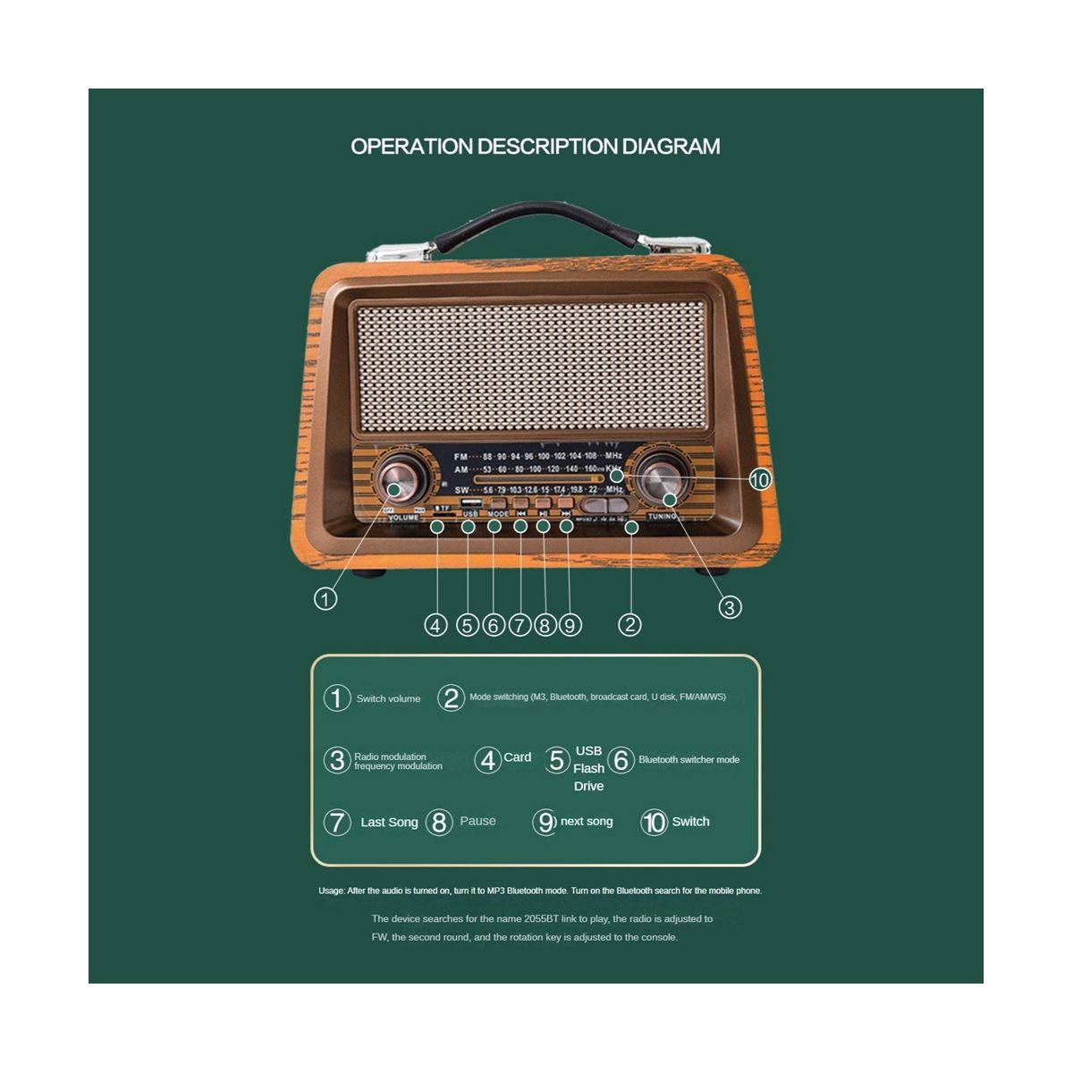 Feature: 1.Desktop sound radio is fine workmanship, easy to match with your bedroom, kitchen, living room, office or study room.