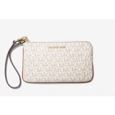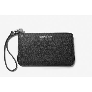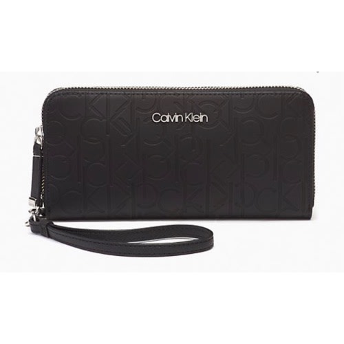 This textured wristlet wallet is crafted from leather designed with embossed logo accent on the front.